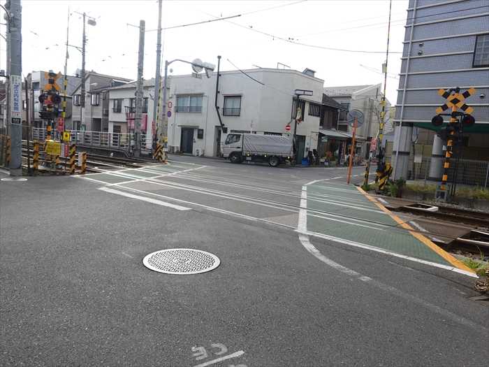 駅前の商店街の道・瀬田貫井線を南に進むと、前方に踏切が現れた。