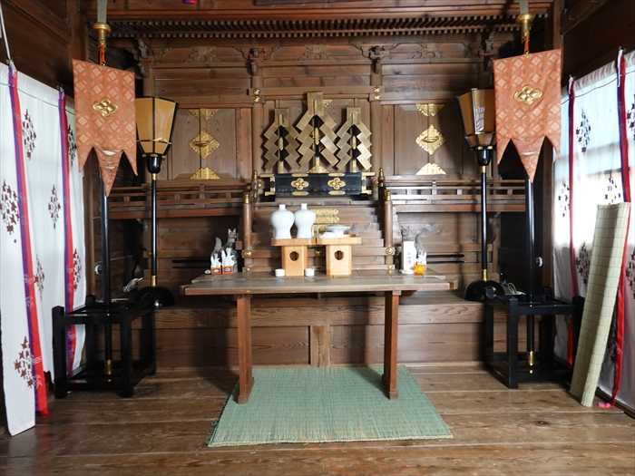 現在の社殿は、昭和39年に改築されたもので、本殿御扉の中には、文化10年(1813)に造られたと