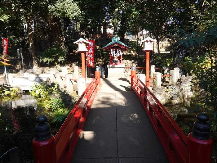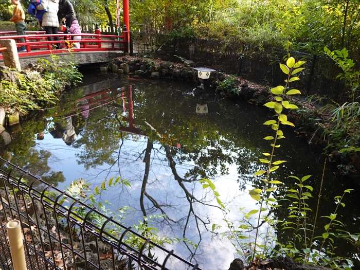「弁天池」と「太鼓橋」。