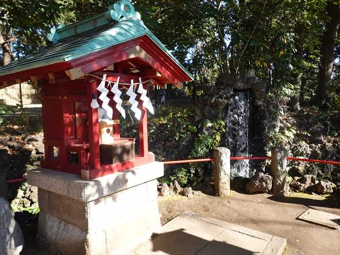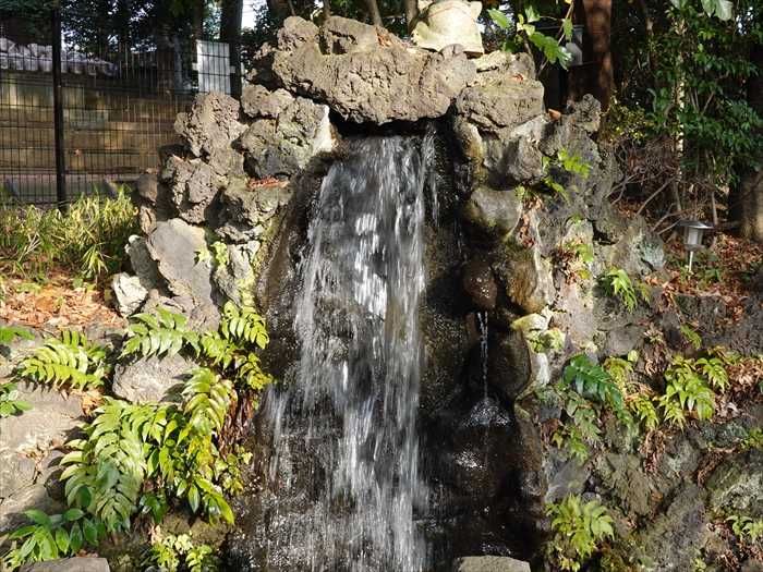 「弁天池」に落ち込む小さな「滝」。