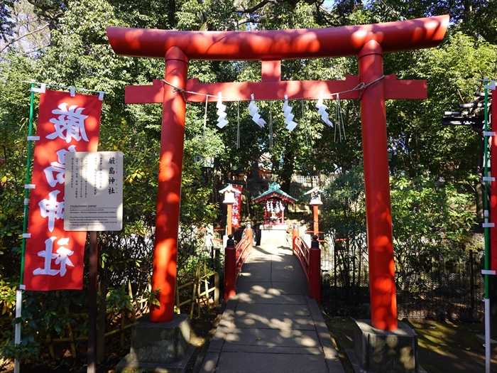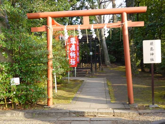 朱の鳥居を潜り進むと左手に末社「厳島神社」への参道が。