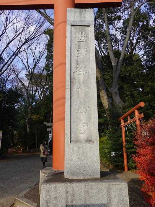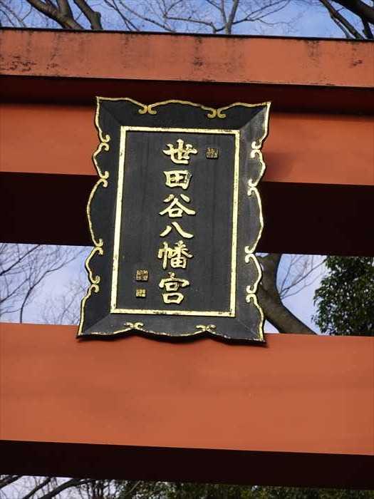 朱赤の鳥居の扁額は「世田谷八幡宮」。