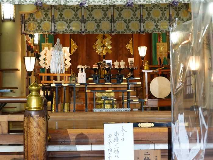 「拝殿」は昭和39年に建造された鉄筋コンクリート建築で、拝殿・幣殿・本殿を連結した権現造。