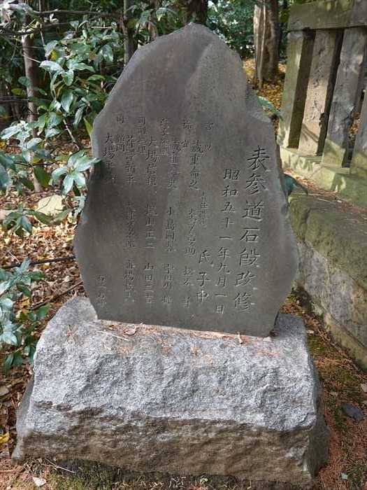 「表参道石段改修 昭和五十一年九月一日 氏子中」碑。