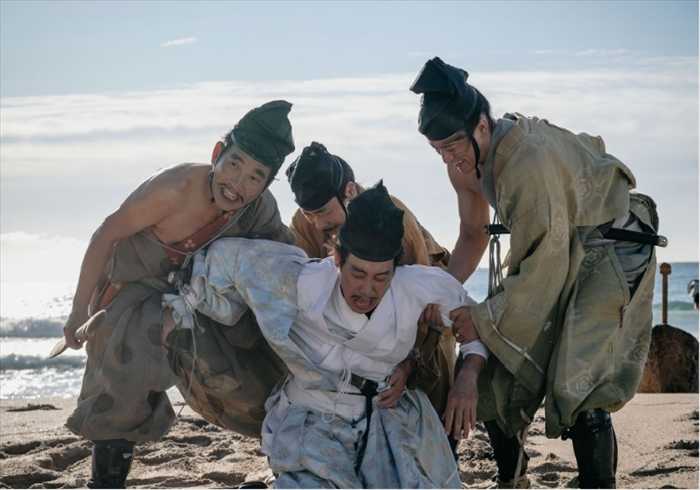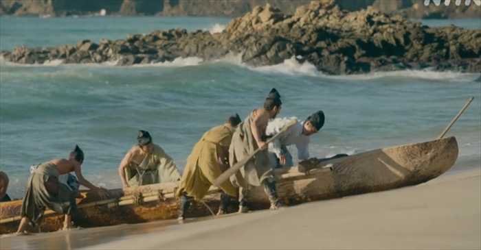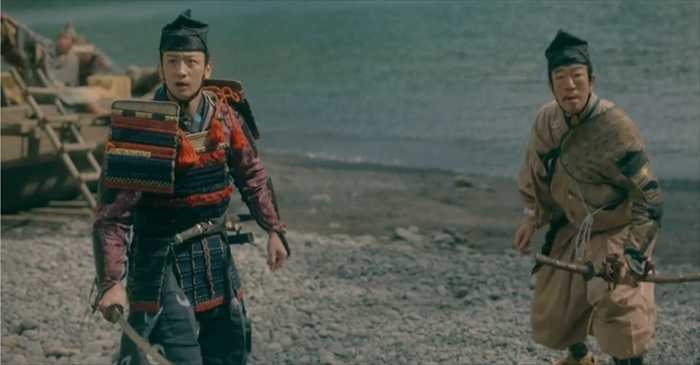 源頼朝(大泉洋)と北条義時(小栗旬)も追って真鶴町「岩海岸」より土肥実平が手配した小舟で