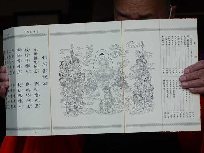 御住職が十六尊の大般若経を守るとされる護法善神の十六善神名(じゅうろくぜんしんめい)の