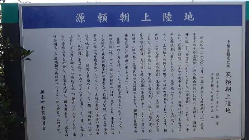 安房国へ逃れた時に頼朝が上陸した地点については、伝承をもとに数か所の地名が