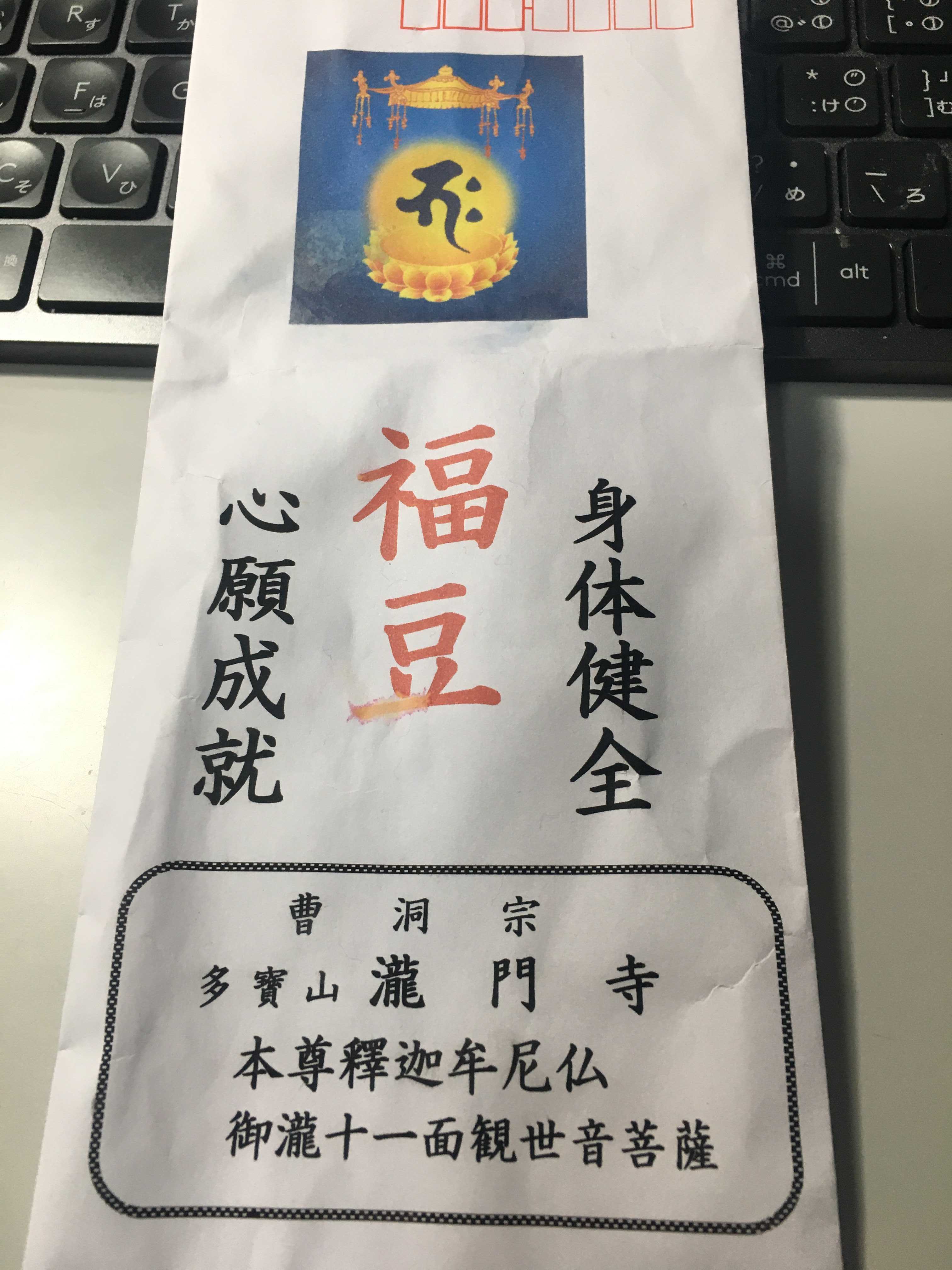 自宅へのお土産に、封筒に入った「福豆」を頂きました。