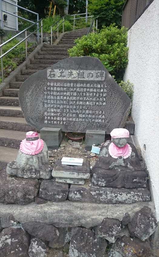 石段の上の小さな広場にあった「石工先祖の碑」。