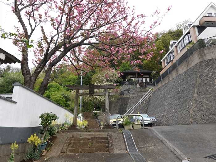 茅ヶ崎市行谷の道を進んで行くと、右手に「金山神社」への入口が現れた。