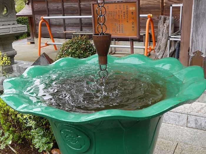 雨が落ちて来て「天水桶」の水面が揺れる。