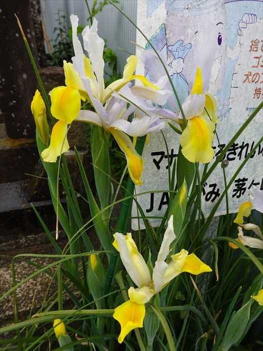 入口には可憐なダッチ・アイリスの花が。