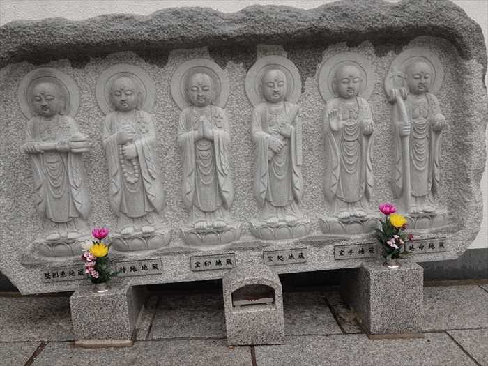 右から、延命地蔵、宝手地蔵、宝処地蔵、宝印地蔵、持地地蔵、堅固意地蔵 の名前が