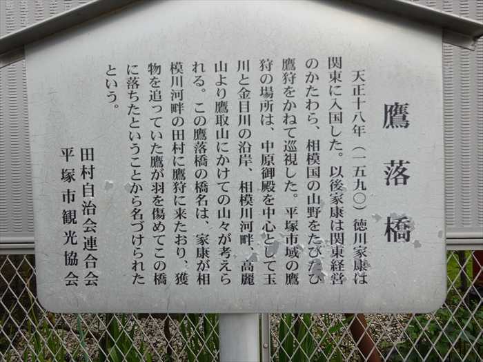 沿岸、相模川河畔・高麗山より鷹取山にかけての山々が考えられる。この鷹落橋の橋名は、家康が