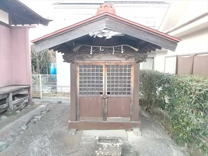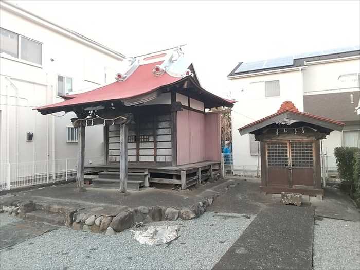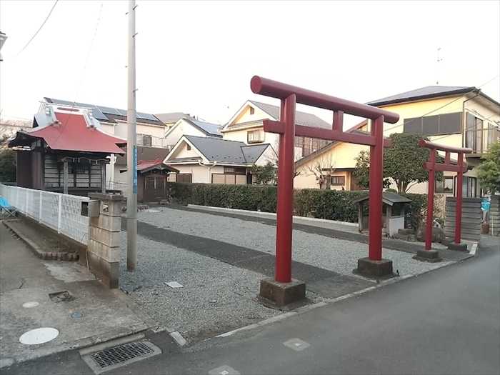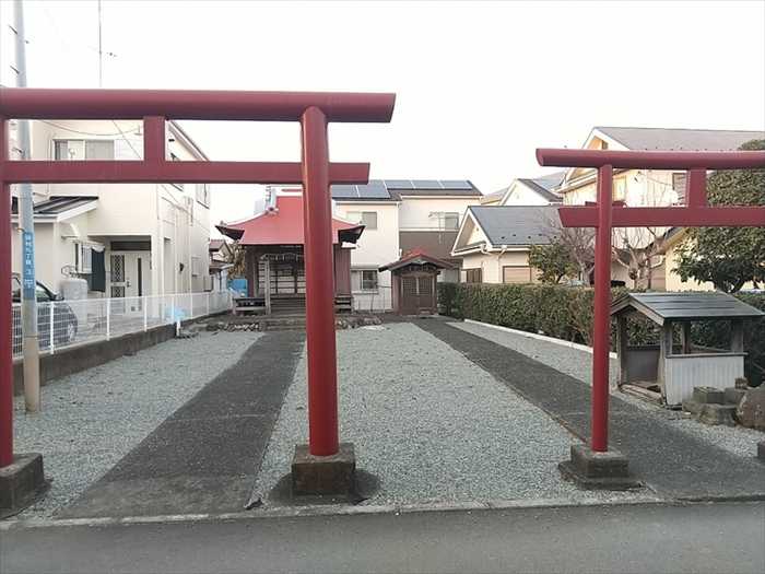 交差点を南下して、農協神田支所前(バス停)の先の路地を左折し東に進むと2基の鳥居があった。