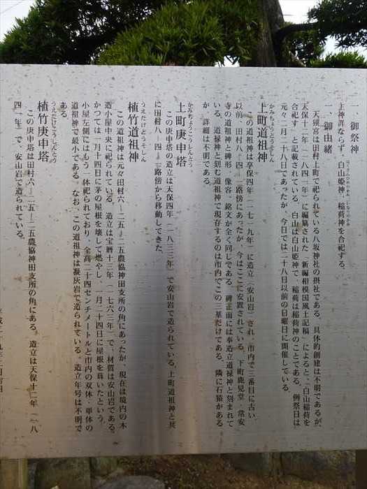 合祀す」と記載されている。白山は白山姫神で、稲荷は稲荷神のことである。
