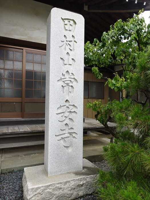 寺号標石「田村山常安寺」。曹洞宗系の寺であるようだ。