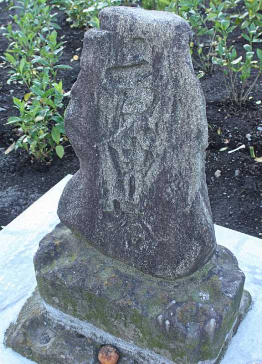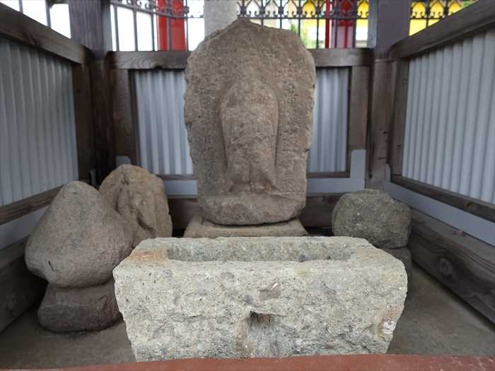 木造小屋中央に祀られている。造立は宝暦十三年(一七六三年)で、材質は安山岩である。