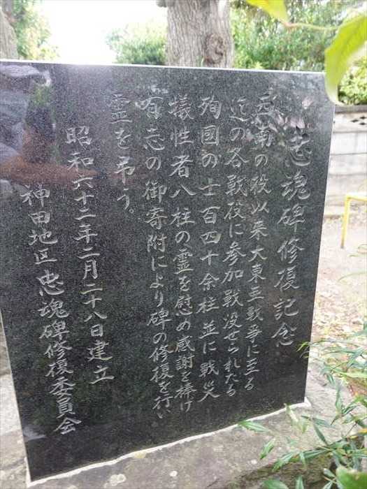 並に戰災犠牲者八柱の霊を慰め感謝を捧げ有志の御寄附により碑の修復を行い霊を