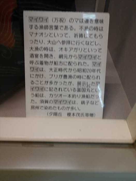 マイワイと呼ぶ着物が船方に配られた。マイワイは、大正時代から昭和20年代にかけて、ブリが