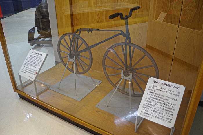 前・後輪異径のミショー式自転車です。この自転車は1869年(明治2)にアメリカから購入された
