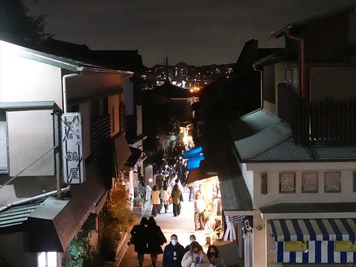 「江の島弁財天仲見世通り」を前方に見る。