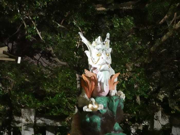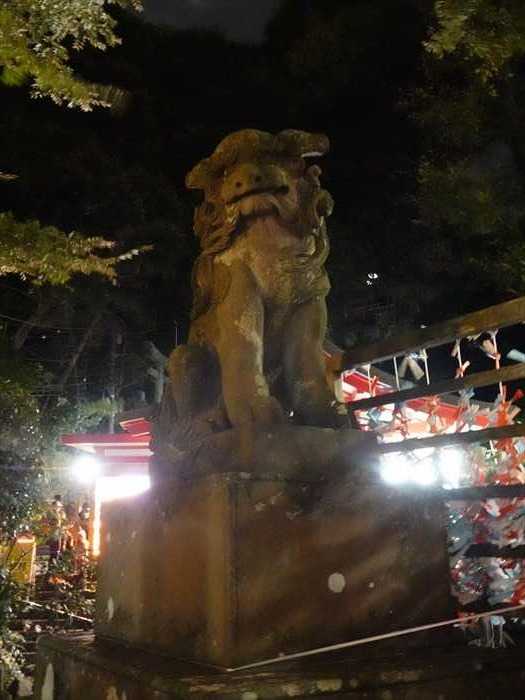 「江島神社 大鳥居」前の狛犬(右)。
