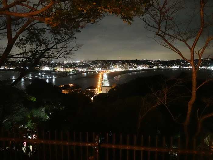 江の島へ続く「江ノ島弁天橋」や「江ノ島大橋」、鎌倉市方面を中心とした夜景を眺めることが