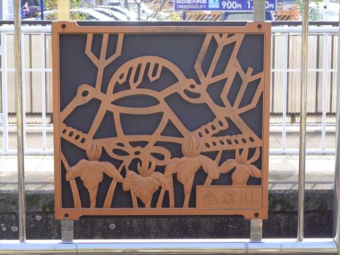 そして白旗川の堤防の手摺には、白旗川と書かれた、彫刻プレートが。