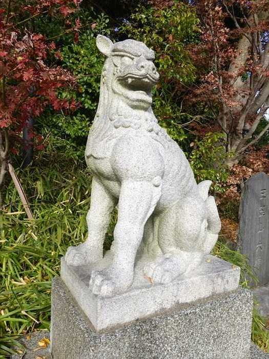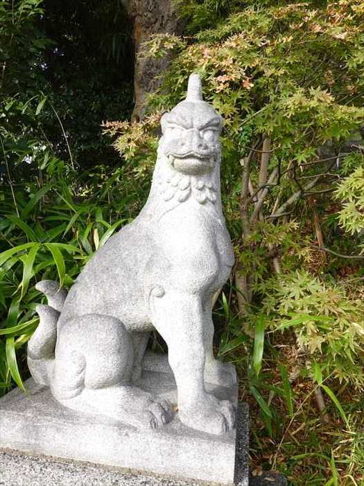 一角の狛犬(左)。