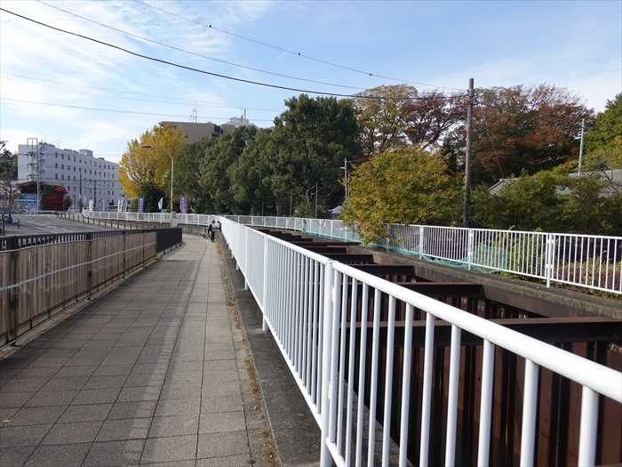 「引地川・フジ史跡ロード」と、境川沿いに藤沢市役所などのフジを観賞する