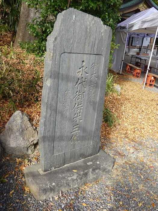 「御大典記念 永代御供米三俵」と刻まれた石碑。