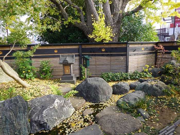 参道の左側の石庭の「みそぎ川」の奥には石祠があった。