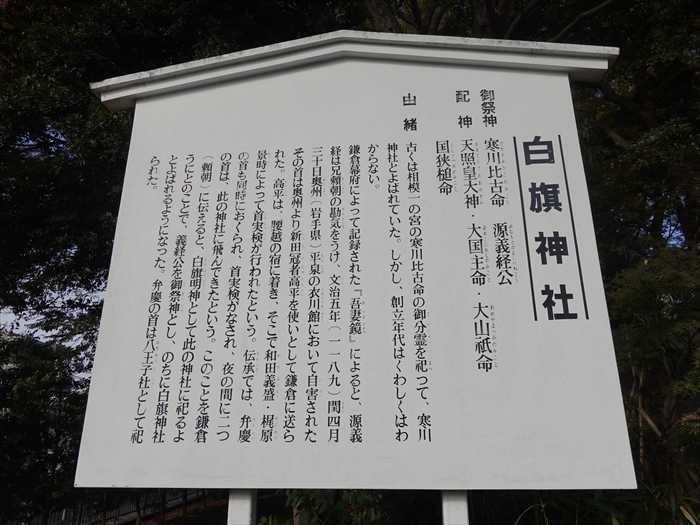 「白旗神社」の御祭神は「寒川比古命」、「源義経公」。