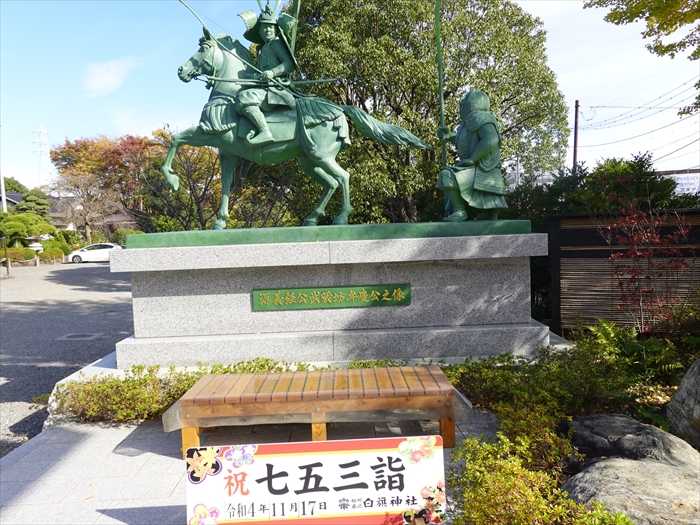 平成8年8月に建立された。社名の「白旗」は平家の赤旗に対する源氏の旗。