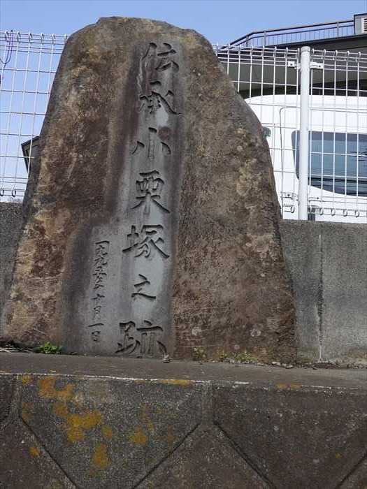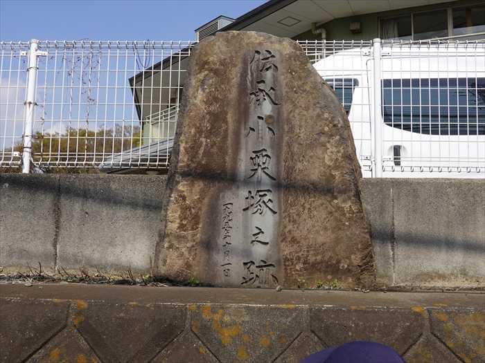 現在は石垣の上に「伝承小栗塚之跡」の石碑が寂しく建っていた。