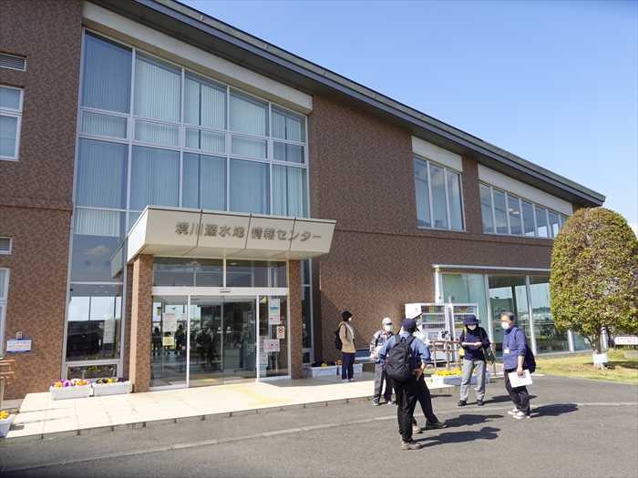 境川遊水地 情報センター 」に到着し、自由時間となり、近くのベンチで、各自用意していた