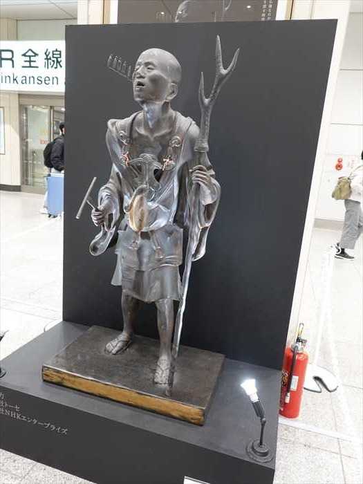 左手には鹿の角のついた杖を持ち、布教のために履きこんだ草履で大地をしっかりと踏みしめ、