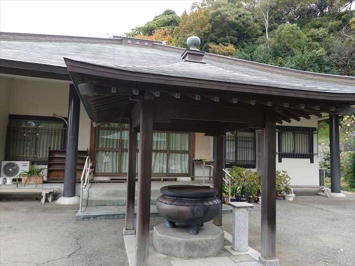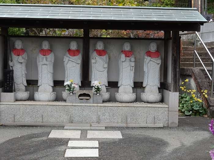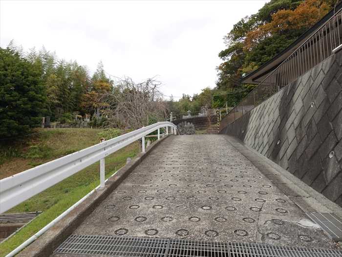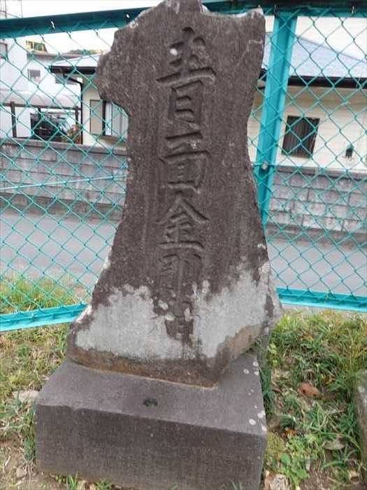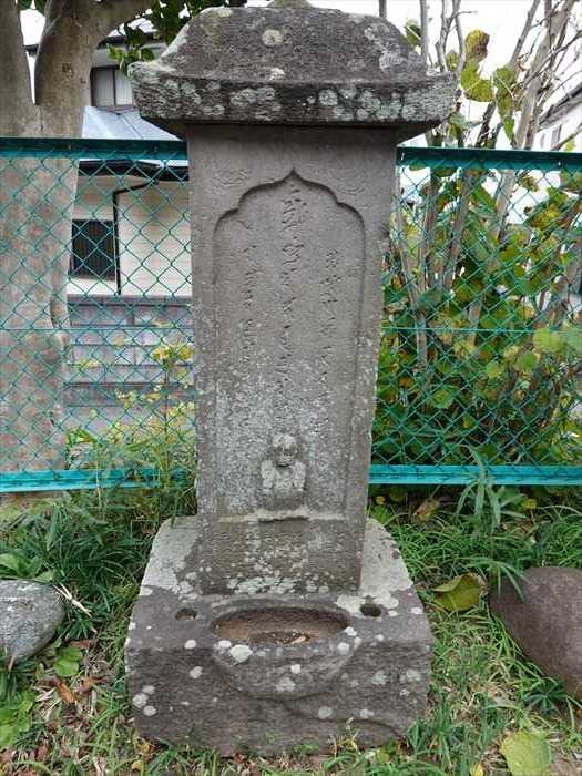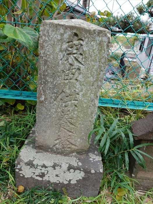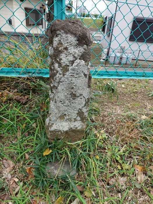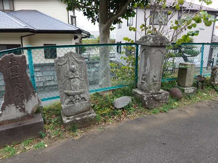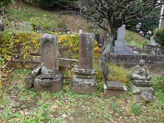 墓地へ上る階段の脇に、古い墓石等の石造物がまとめて。