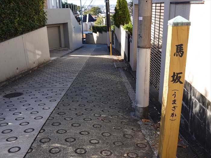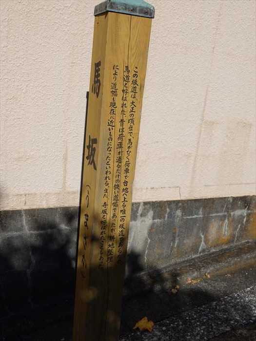 「この坂道は、大正の頃まで、馬がひく荷車で台地へ上る唯一の坂道であるため、馬坂と