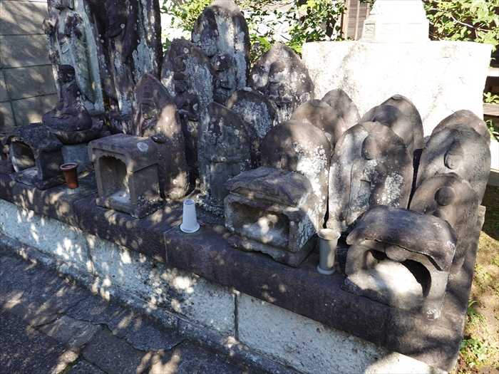 石仏群の左端のひときわ大きな2基の石仏はどちらも庚申講中によるものである。