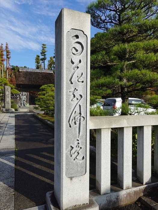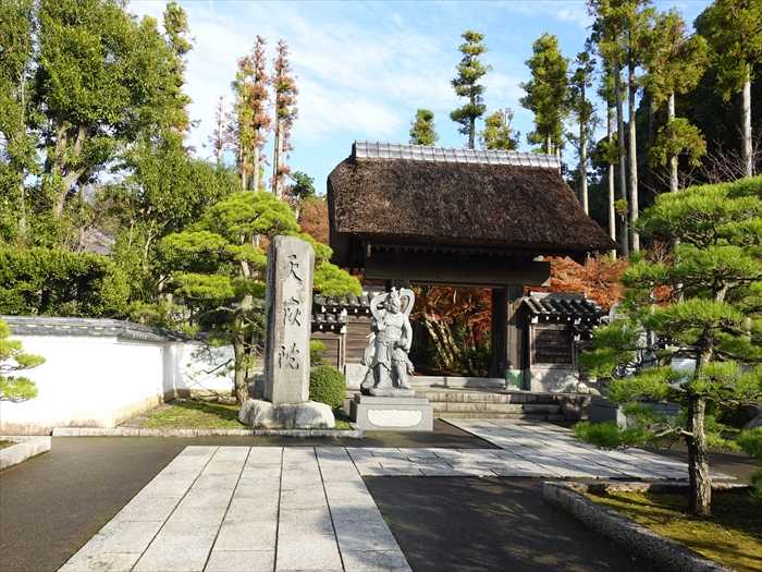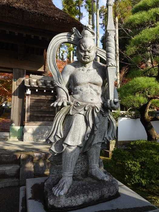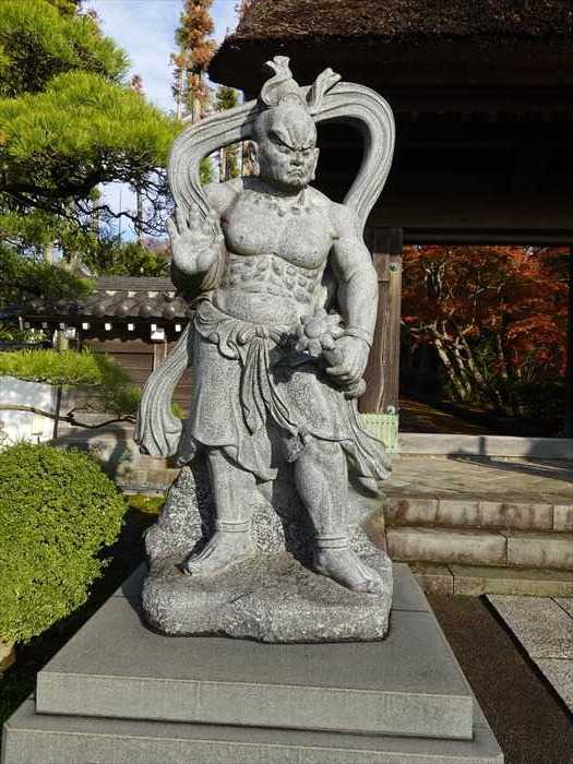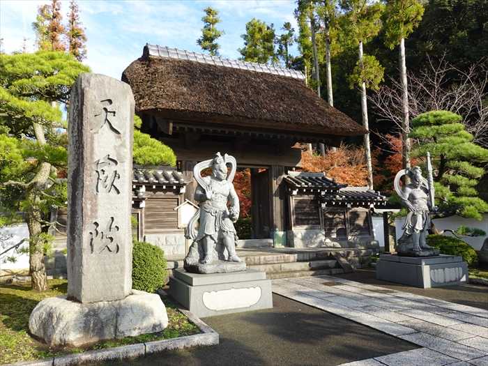 「山門」とその前の「 寺号標石 」と「 金剛力士像・仁王像 」。