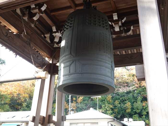 安永3年(1774年)の銘のある梵鐘。総高161.8センチメートル、口径81.6センチメートル、