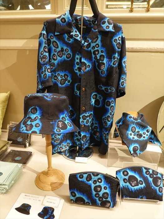 「曜変天目」の青く輝く光彩をアレンジした黒地のアロハシャツ?