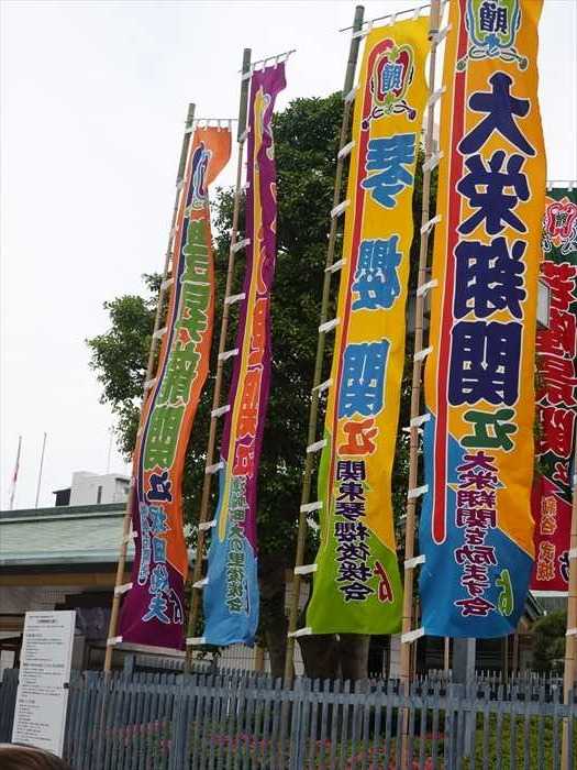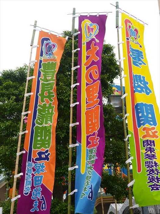 相撲のぼり旗は竹棒とよばれる竹で作られたポールを使って立てられていた。