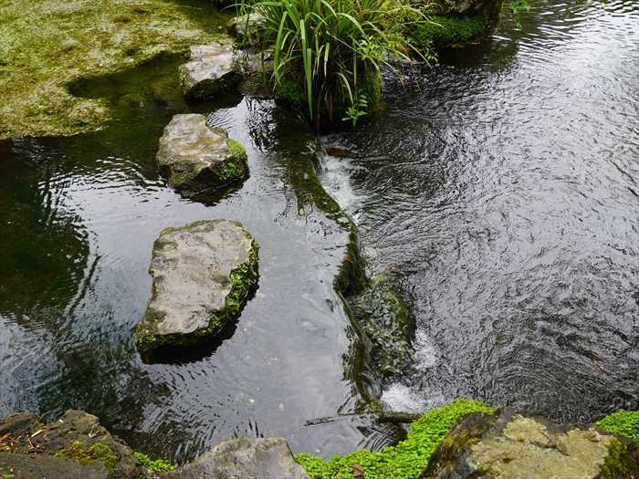岩や木々、水の流れなどで命の物語を表現します。遊歩道をたどると、私たちすべてに
