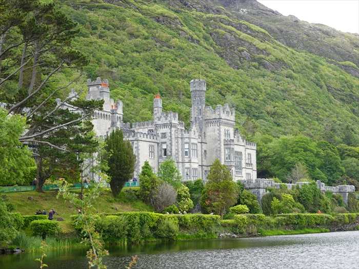 険峻な山並みが、カイルモア修道院(Kylemore Abbey)の威厳をさらに際立てているように
