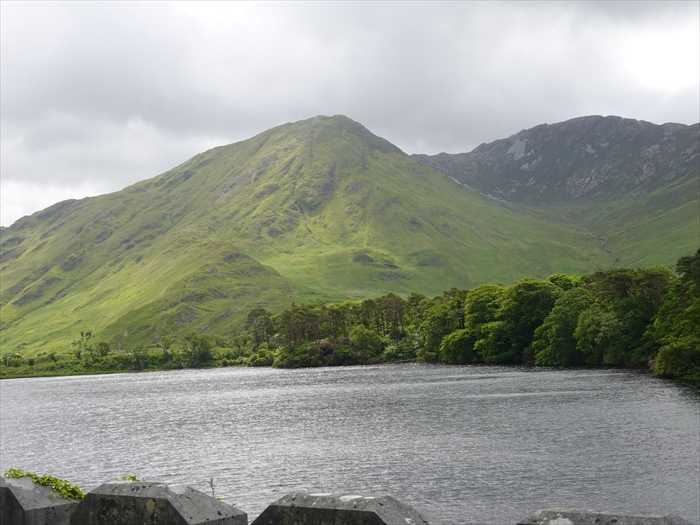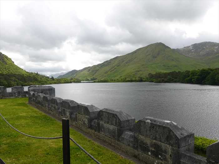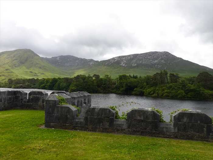 カイルモア修道院(Kylemore Abbey) の石塀、 Pollacapall Lough・ポラカパル湖、 そして
