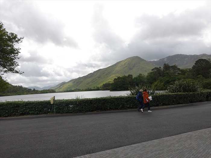 Kylemore Abbey・カイルモア修道院 」に向かって湖岸を進む。