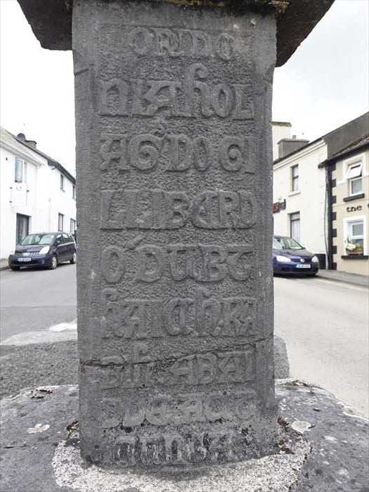 この石碑の碑文は古いゲール語(アイルランド語)で刻まれているようであった。 十字架には「OR DO NIAHOL AG DO GILLIBERD O'DUBTHAIGH RABIH ABAIDDE AGT CUNGA」と刻まれており、「コングの修道院長であったニアホルとギルバート・ オドゥブタイのために祈りなさい」という意味であると。